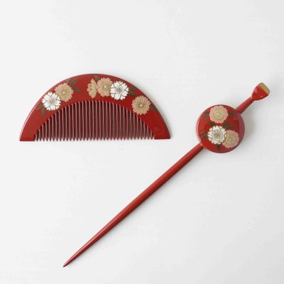 本漆純金蒔絵螺鈿 櫛・平打ちセット 八重桜文様 (朱)のレビューを書く