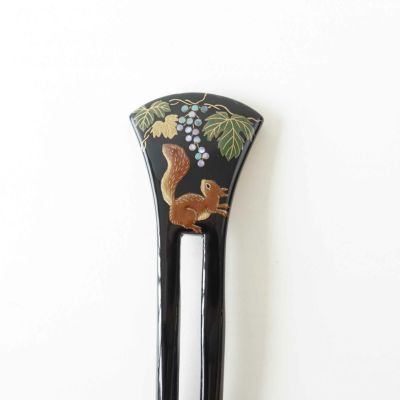 本漆純金蒔絵螺鈿かんざし 新角ピン りすに葡萄のレビューを書く