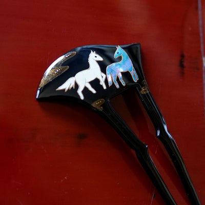 本漆純金蒔絵螺鈿かんざし 波型ピン(中) 馬のレビューを書く