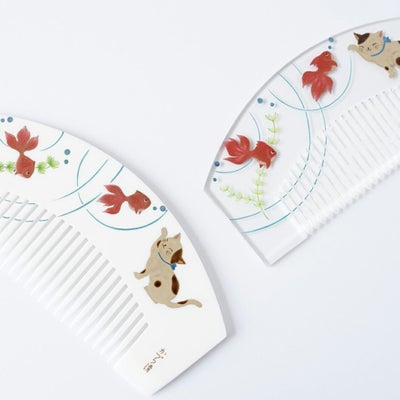 アクリル 本蒔絵櫛 猫と金魚(白・透明)のレビューを書く