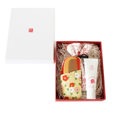 櫛と椿巾着セット(ハンドクリームミニ)あかね櫛のレビューを書く