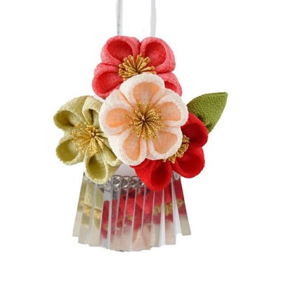 七五三 四輪梅びら付きかんざし(赤・ピンク・黄緑)のレビューを書く