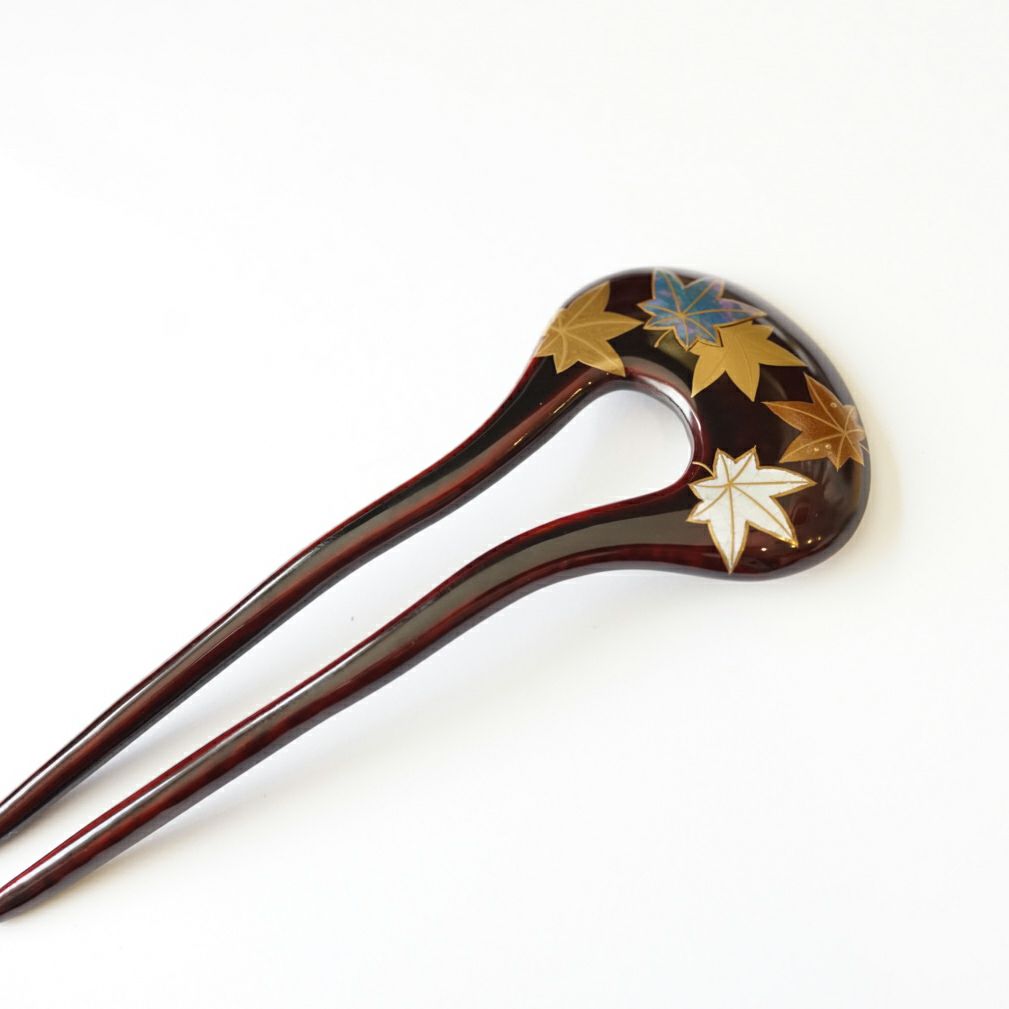 本漆純金蒔絵螺鈿かんざし 幅広輪ピン 紅葉文様