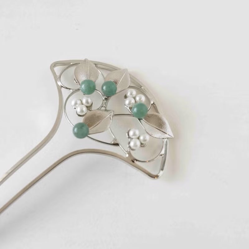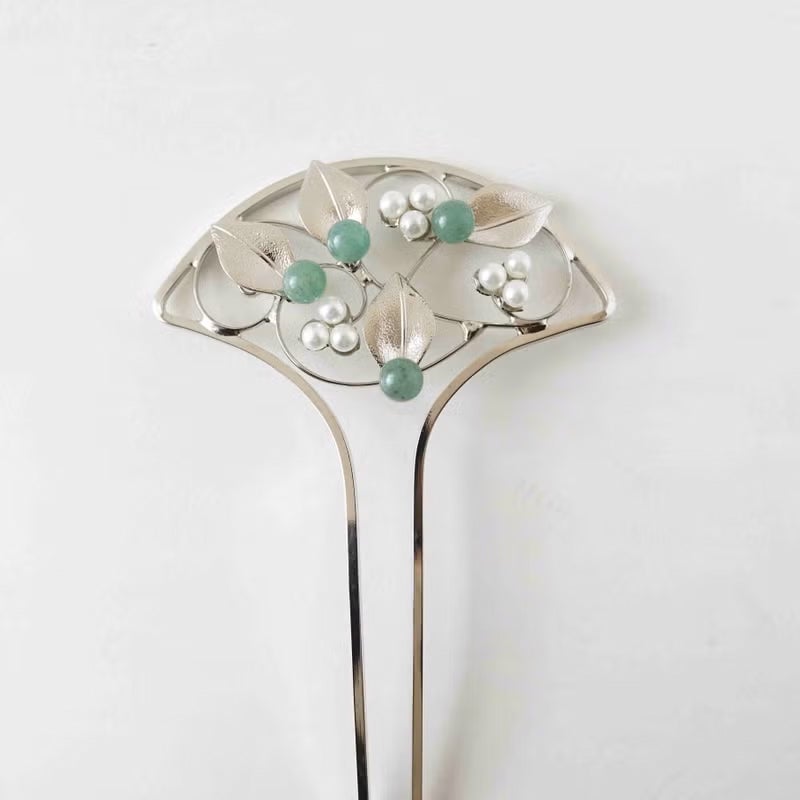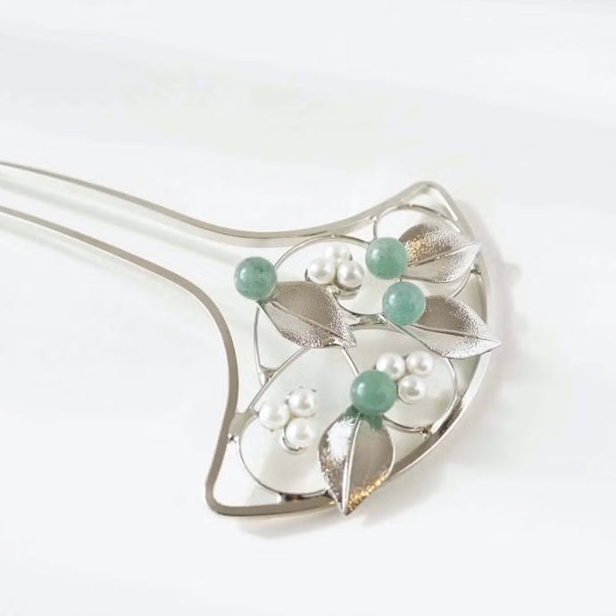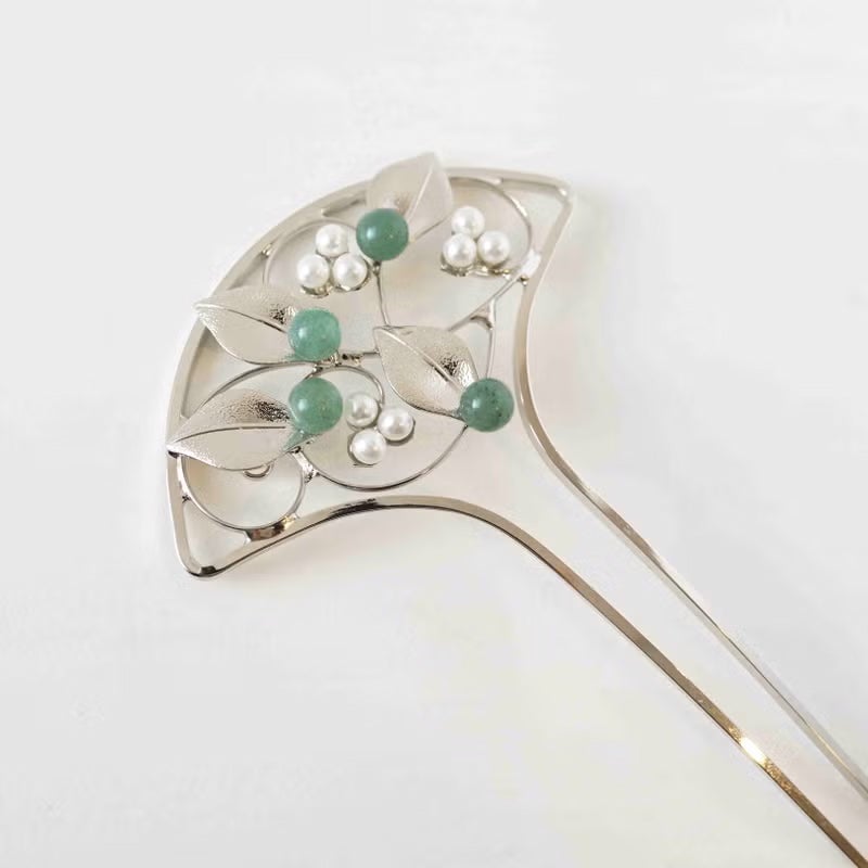 天然石付き 唐草 金属かんざし(シルバー)